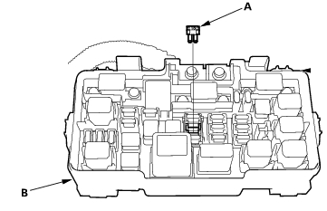 - Remove the No. 6 ECU fuse (15A) (A) from the under-hood fuse/relay box (B) for more than 10 seconds.