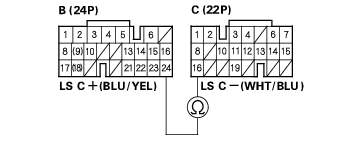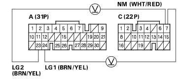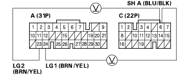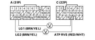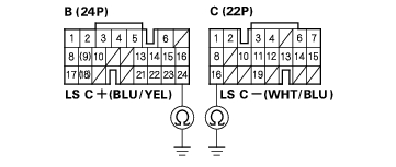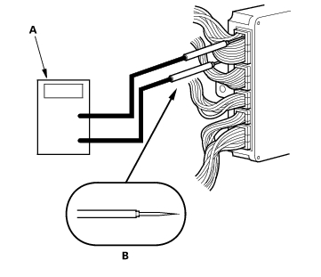 - Inspect the circuit on the PCM, according to the DTC troubleshooting with a digital multitester (A) and tapered tip probe (B) as shown.