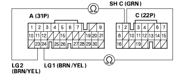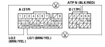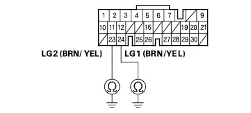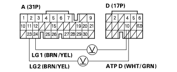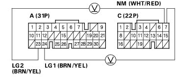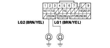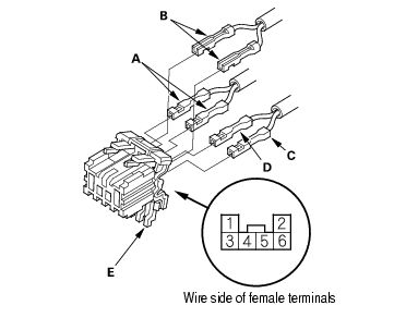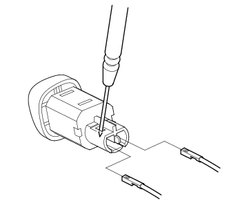 - If you cannot get to the wire side of the connector or the wire side is sealed, disconnect the connector and use the tester probe to probe the connectors from the terminal side. Do not force the probe into the connector.