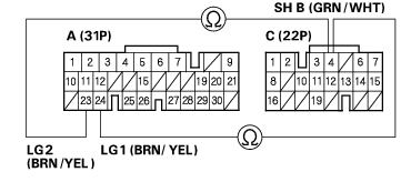 NOTE: You can also check for DTCs with SCS signal terminals short-circuited using with the special tool (DLC pin box 07WAJ-0010100) (see section Appendix).