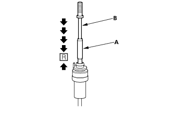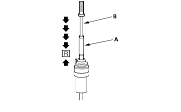 - Push the shift cable down until it stops, then release it. Pull the shift cable back one step so that the shift cable is in [R]. Do not hold the shift cable guide (A) to adjust the shift cable (B).