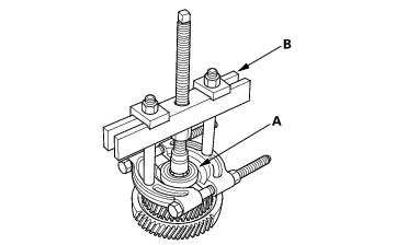 - Remove the carrier bearing (A) with a commercially-available bearing puller (B).