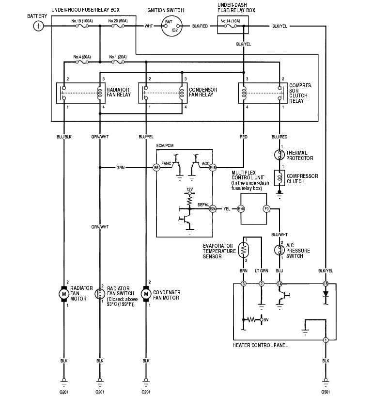BLOWER MOTOR RELAY, RADIATOR FAN RELAY, CONDENSER FAN RELAY, COMPRESSOR CLUTCH RELAY