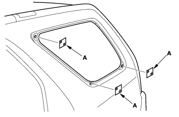 Make alignment marks (A) across the windshield and body with a grease pencil at the four points shown. Be careful not to touch the windshield where adhesive will be applied.