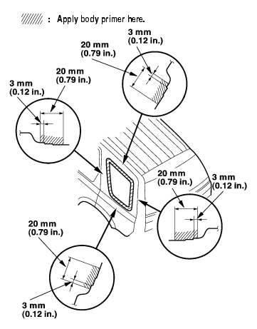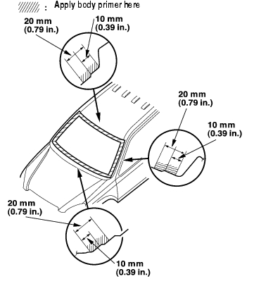 - Never touch the primed surfaces with your hands. If you do, the adhesive may not bond to the windshield properly, causing a leak after the windshield is installed.