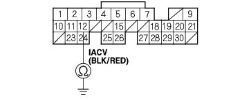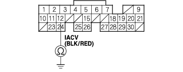 - Check for continuity between body ground and IAC valve 3P connector terminal No. 1.