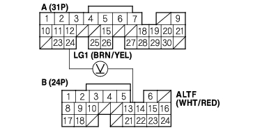 - Measure voltage between ECM/PCM connector terminals A24 and B13.