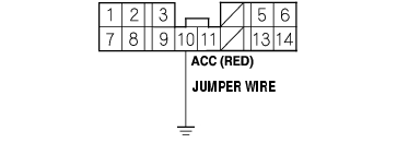 - Momentarily connect the under-hood fuse/relay box 14P connector terminal No. 10 to body ground with a jumper wire several times.