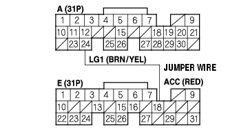 - Momentarily connect ECM/PCM connector terminals A24 and E18 with a jumper wire several times.