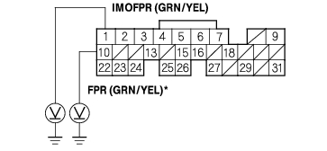 - Turn the ignition switch ON (II), and measure voltage between ECM/PCM connector terminal E1 (E10)* and body ground within the first 2 seconds after the ignition switch was turned ON (II).