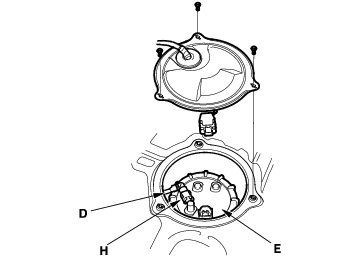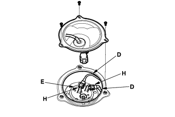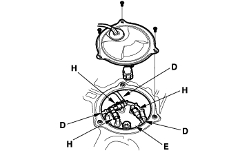 - Install the part in the reverse order of removal with a new base gasket (D) and new O-rings (E), then check these items: