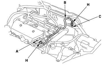 - When connecting the wire harness, make sure the connection is secure and the connector (H) is firmly locked into the place.