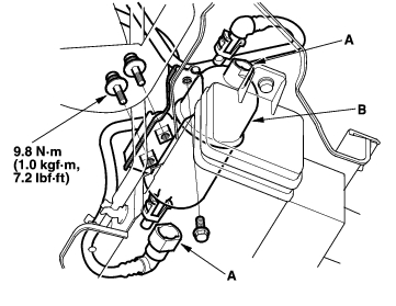 - Remove the glove box (see page 20-95) , PGM-FI main relay 2 (A).