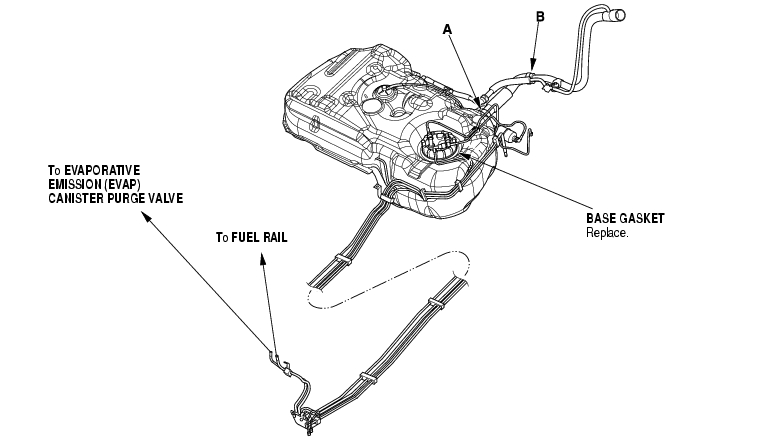 - Install the fuel pump assembly in the reverse order of removal with a new base gasket (I) and new O-rings (J), then check these items: