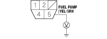 - Measure voltage between fuel pump 5P connector terminal No. 5 and body ground within the first 2 seconds after the ignition switch was turned ON (II).