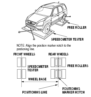 Use the free rollers under the rear wheels when performing test the vehicle with the speedometer tester.