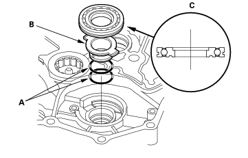 - Install the new secondary shaft bearing (C) in the direction shown.
