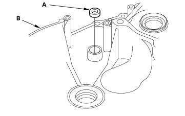 - Install the new O-rings (A) on the ATF guide collar (B), then install the ATF guide collar in the housing.