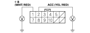 - Measure the voltage between body ground and AVN unit connector A (12P) terminals No. 1 and No. 2 individually.