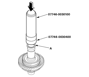 - Install the 4th gear collar (A) with the special tools and a press.