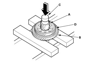 - Stop pressing the countershaft when the 1st gear contacts the 2nd gear (D).