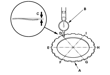 - Place the clutch waved-plate (A) on a surface plate, and set a dial indicator (B) on the waved-plate.