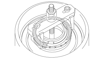 - Zero the dial indicator with the clutch end plate lifted up to the snap ring (C).