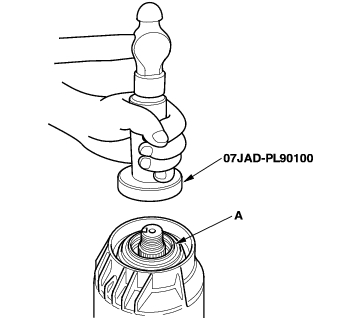 - Install the oil seals (A) squarely using the special tools. Be careful not to damage the lip of the oil seals.