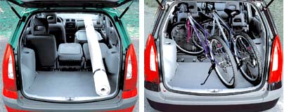 Сложив спинки сидений, в салоне можно перевозить предметы длиной до 2,6 м, а если сиденья заднего ряда снять вовсе, то можно погрузить на их место два велосипедаНа этом, конечно, возможности трансформации салона не заканчиваются, а в "предельном режиме" автомобиль можно превратить хоть в спальню.