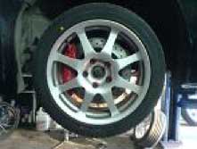 А вот вариант установки передних четырёх поршневых тормозных машинок от AP racing. То что было. |