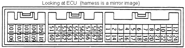 | Pin | 1991-1994 Turbo | Wire Color | 1991-1994 Non-turbo | Wire Color | |