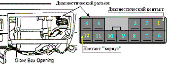 the voltmeter positive lead to terminal No.1 and other lead to terminal No.12) диагностического разъема