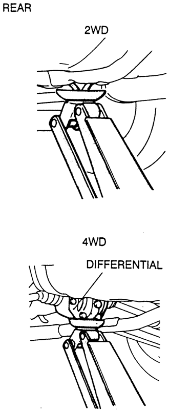 NOTE: Always position a block of wood or small rubber pad on top of the jack or jackstand to protect the lifting point's finish when lifting or supporting the vehicle.