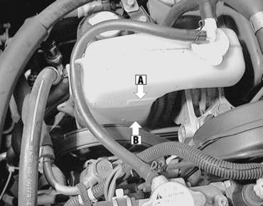 | Fig. 1: The coolant reservoir has FULL (A) and LOW