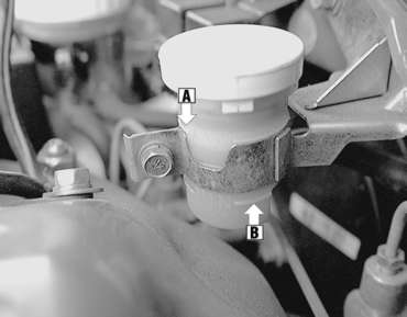 | Fig. 1: The clutch master cylinder has MAX (A)
