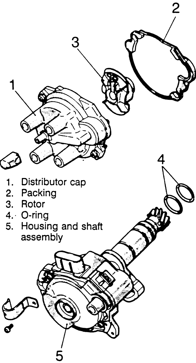 Unscrew the distributor cap hold-down screws or release the clips and lift