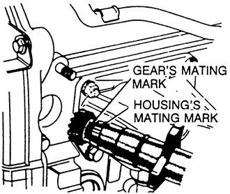 - Align the distributor housing and gear mating marks. Install the distributor