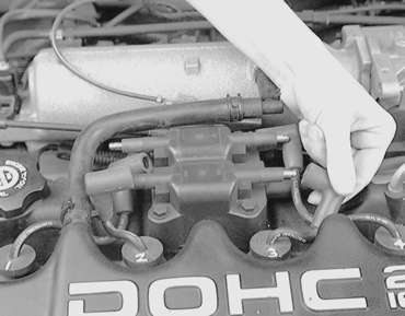 | Fig. 5: Remove the ignition coil mounting bolts .