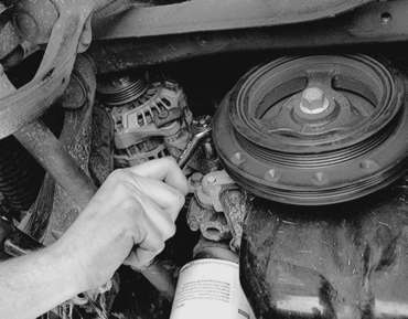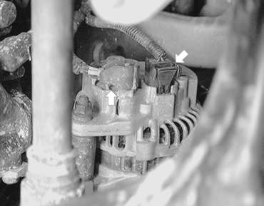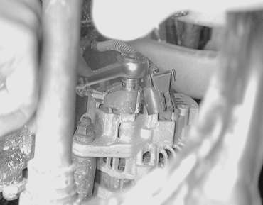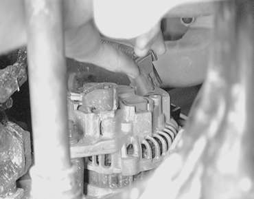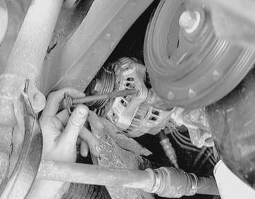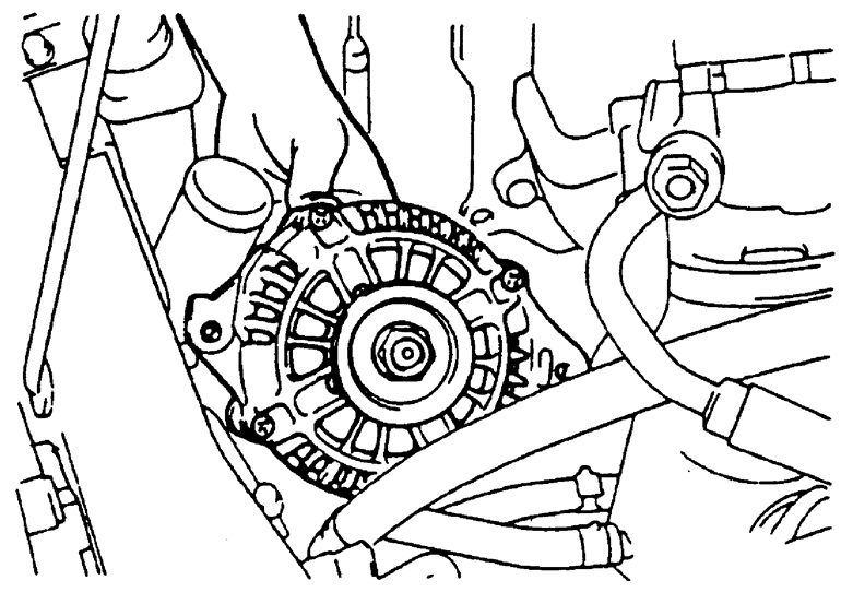 | Fig. 10: On the 2.0L engine, lift the alternator up and out of the vehicle |
