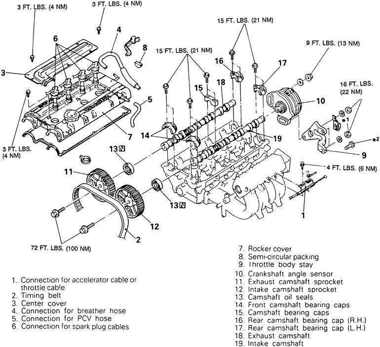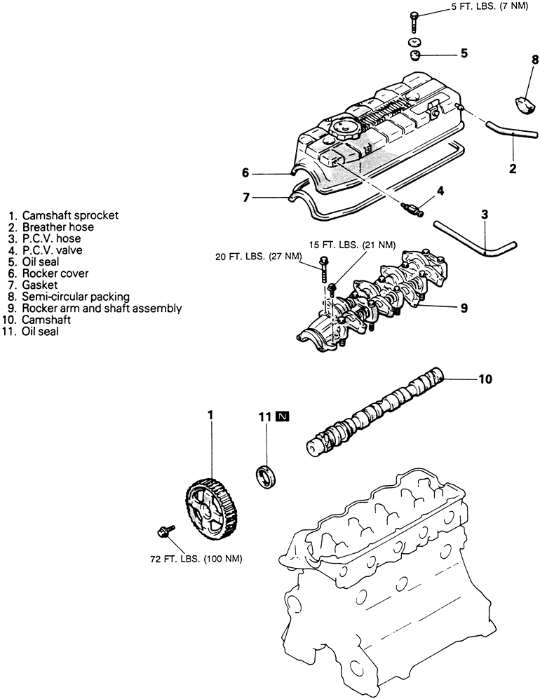 | Fig. 1: Exploded view of the camshaft and related components — 1.8L engine |