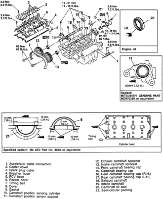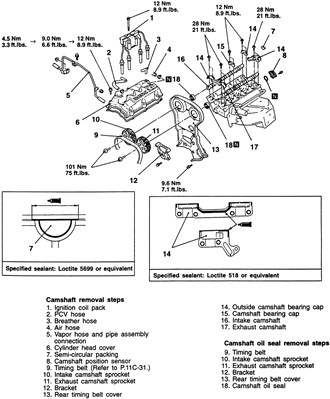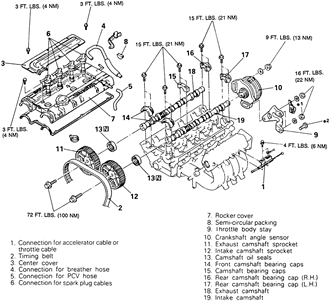 | Fig. 11: Exploded view of the camshafts and related components — 2.4L engines |
