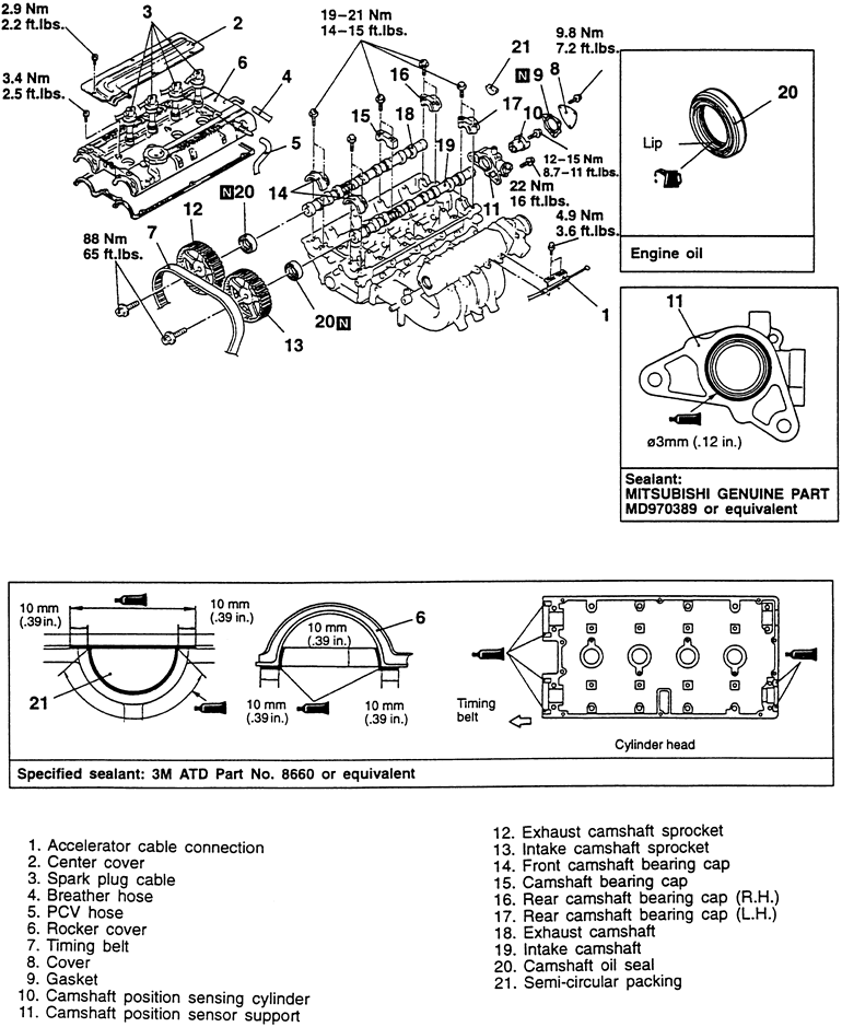 the camshaft(s) and the bearing caps. Make sure the camshaft(s) can be turned