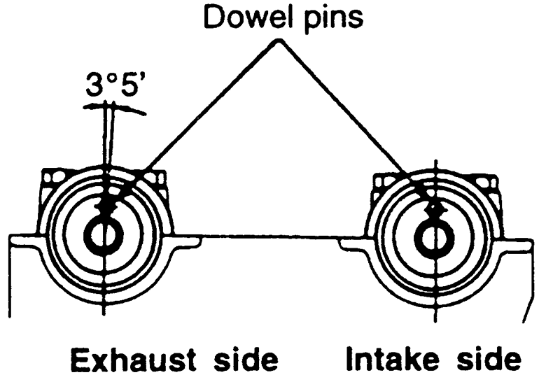 NOTE: Do not confuse the intake camshaft with the exhaust camshaft. The intake camshaft has a split on its rear end for driving the crank angle sensor.