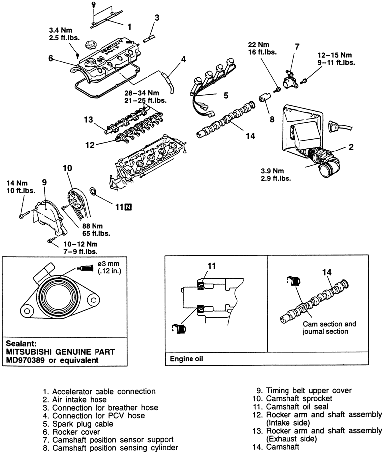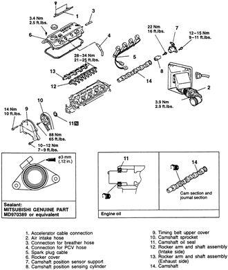 | Fig. 2: Camshaft and related components — 1990–94 2.0L engines |