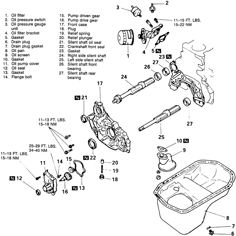- Remove the oil pan, oil screen and gasket.