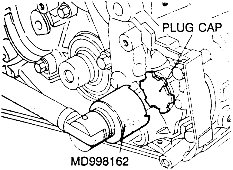 - Using special tool MD998162, remove the plug cap in the engine front cover.