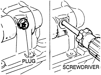 - Remove the plug on the side of the engine block. Insert a Phillips screwdriver