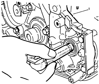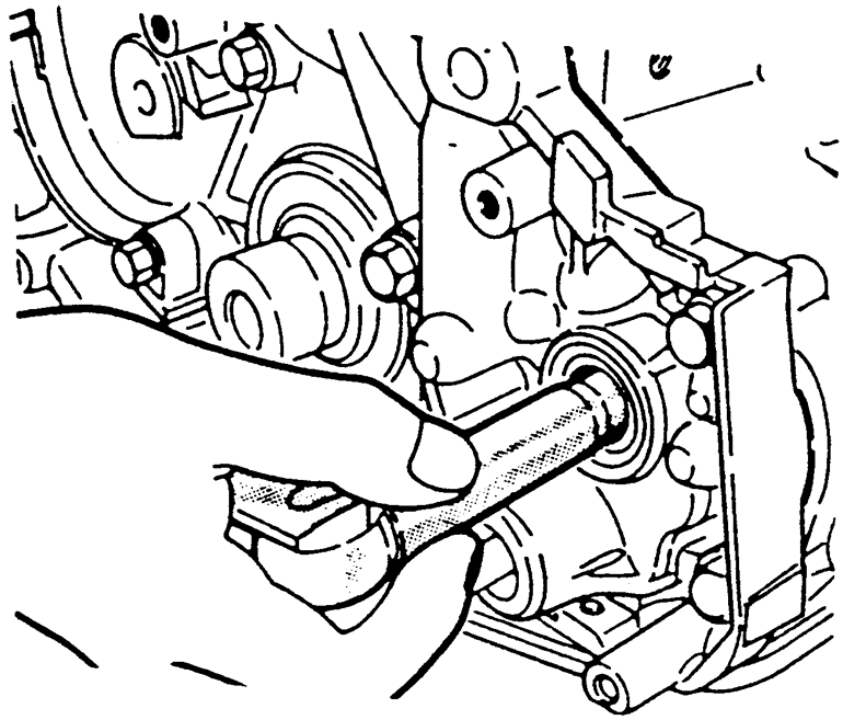 | Fig. 7: Removing the front crankshaft oil seal — 1995–98