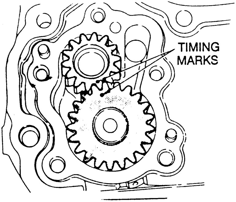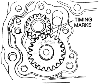 - Align the timing mark on the oil pump drive gear with that on the driven