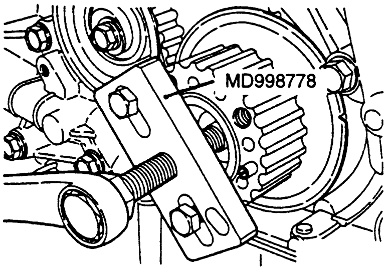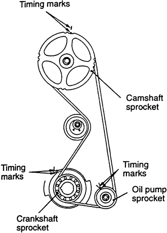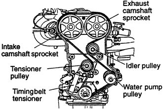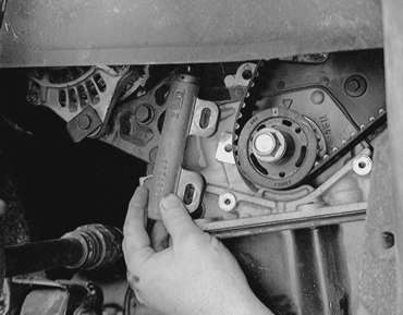 NOTE: If the timing belt is going to be reused, mark the direction of rotation on the belt with an arrow. Install the belt in the same direction.